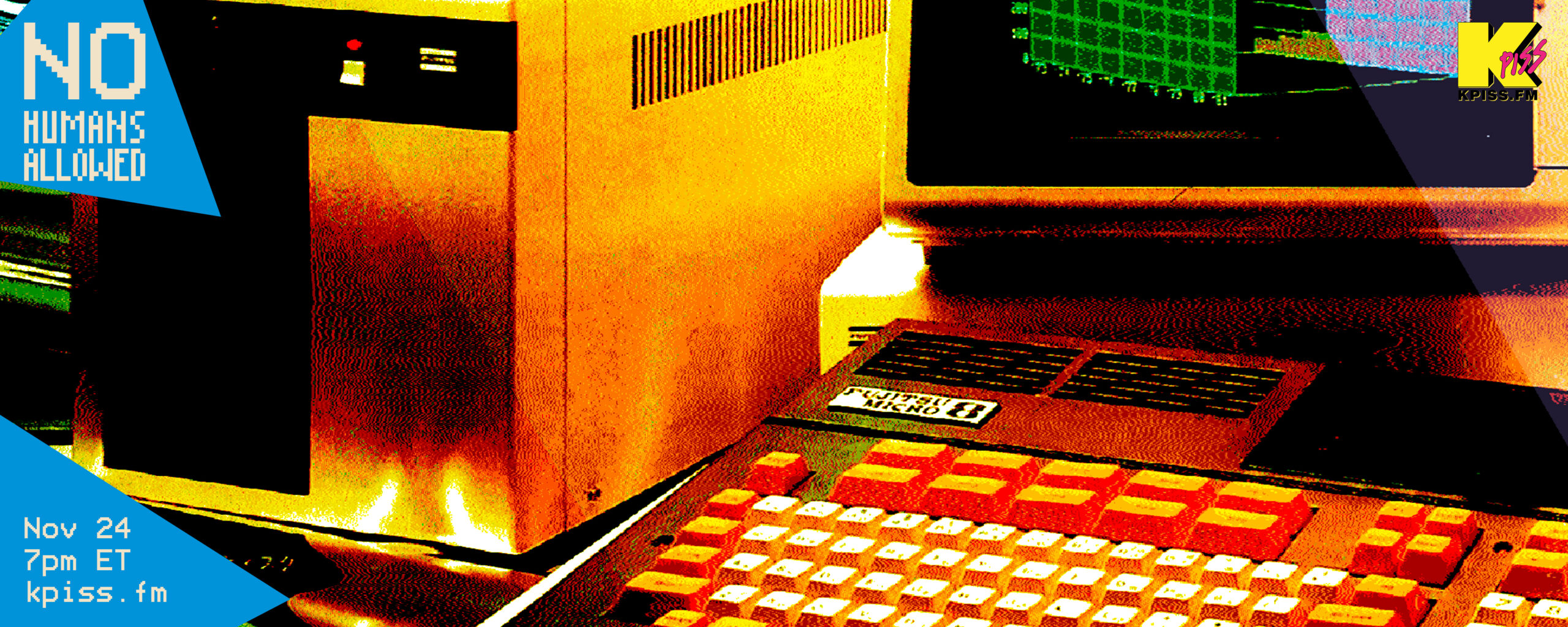 No Humans Allowed is Brian Blackout’s award-winning, weekly robots-themed radio show on internet station KPISS.fm. Machine vibes 4 machines. Songs for robots, androids, mandroids, cyborgs, AIs, cylons, skinjobs, roombas, wifi routers, smart devices, anything colored Bondi blue, and virtual assistants. Humans not required. Broadcasts live every Wednesday at 6pm CT on kpiss.fm, with over 200 episodes now streamable in the archives on topics like and Beach Simulations, Roomba dance parties, undersea adventures + Cyber Texas.