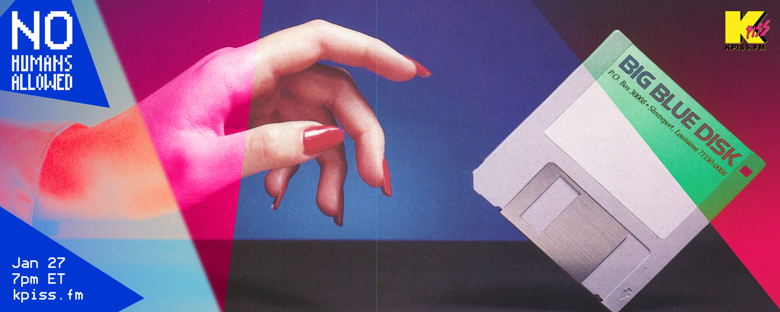No Humans Allowed is Brian Blackout’s award-winning, weekly robots-themed radio show on internet station KPISS.fm. Machine vibes 4 machines. Songs for robots, androids, mandroids, cyborgs, AIs, cylons, skinjobs, roombas, wifi routers, smart devices, anything colored Bondi blue, and virtual assistants. Humans not required. Broadcasts live every Wednesday at 6pm CT on kpiss.fm, with over 200 episodes now streamable in the archives on topics like and Beach Simulations, Roomba dance parties, undersea adventures + Cyber Texas.