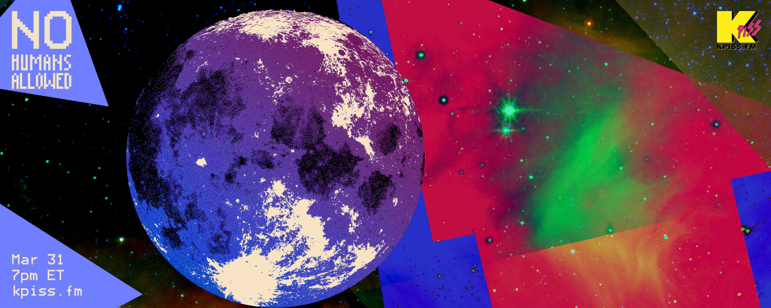 No Humans Allowed is Brian Blackout’s award-winning, weekly robots-themed radio show on internet station KPISS.fm. Machine vibes 4 machines. Songs for robots, androids, mandroids, cyborgs, AIs, cylons, skinjobs, roombas, wifi routers, smart devices, anything colored Bondi blue, and virtual assistants. Humans not required. Broadcasts live every Wednesday at 6pm CT on kpiss.fm, with over 200 episodes now streamable in the archives on topics like and Beach Simulations, Roomba dance parties, undersea adventures + Cyber Texas.